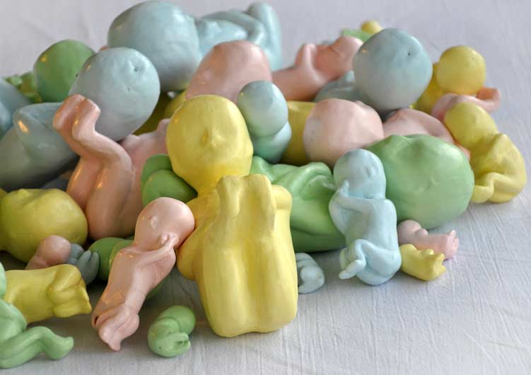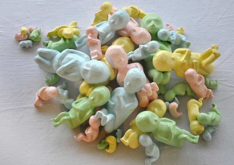 The first weeks of human life, seven foetuses from the 8th to the 20th week of pregnancy, were modelled to make us aware of where we come from and how insignificant and fragile human life begins, to which we ascribe so much importance.