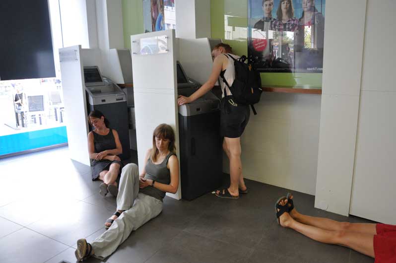 Team Nullstellung, consisting of Katharina Brandl, Violeta Ivanova and Karla Woess, organises sleeping actions in public spaces to draw attention to the unfair working conditions in the arts and culture sector. These sleep actions lead to different formats of reflection (e.g. exhibitions, publications, workshops). The aim is to sensitise the group of visual artists in Linz and Upper Austria, to organise, discuss and develop (survival) strategies together.